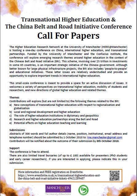 Call for Papers: One day conference on Transnational Higher Education and the China Belt and Road Initiative (BRI)