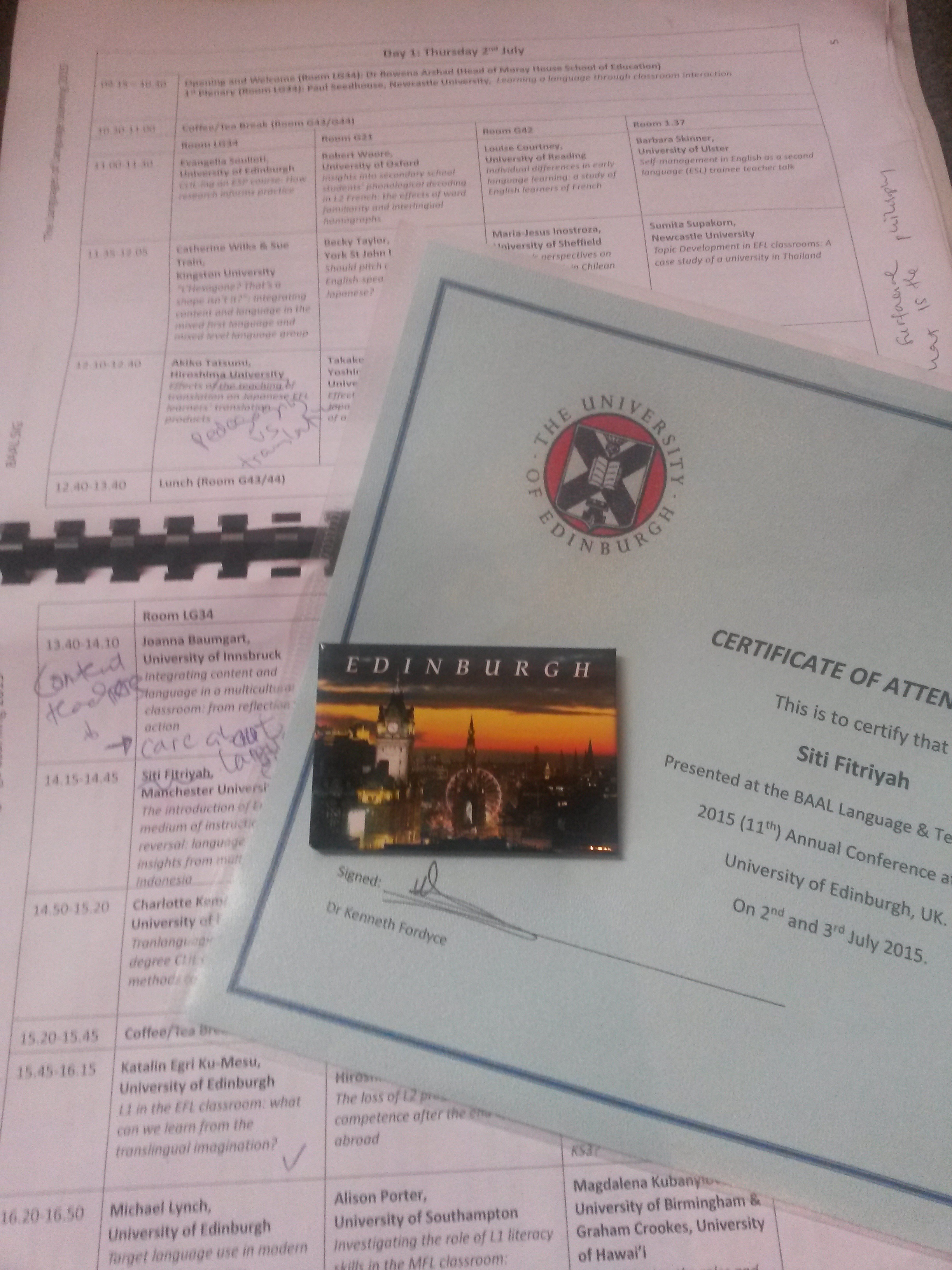 Reflections on BAAL Language Learning and Teaching SIG Conference 2015 – Edinburgh